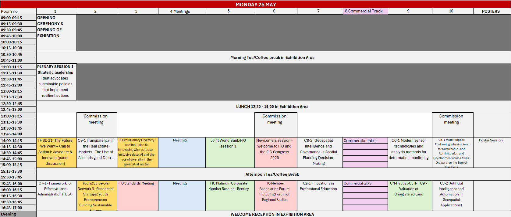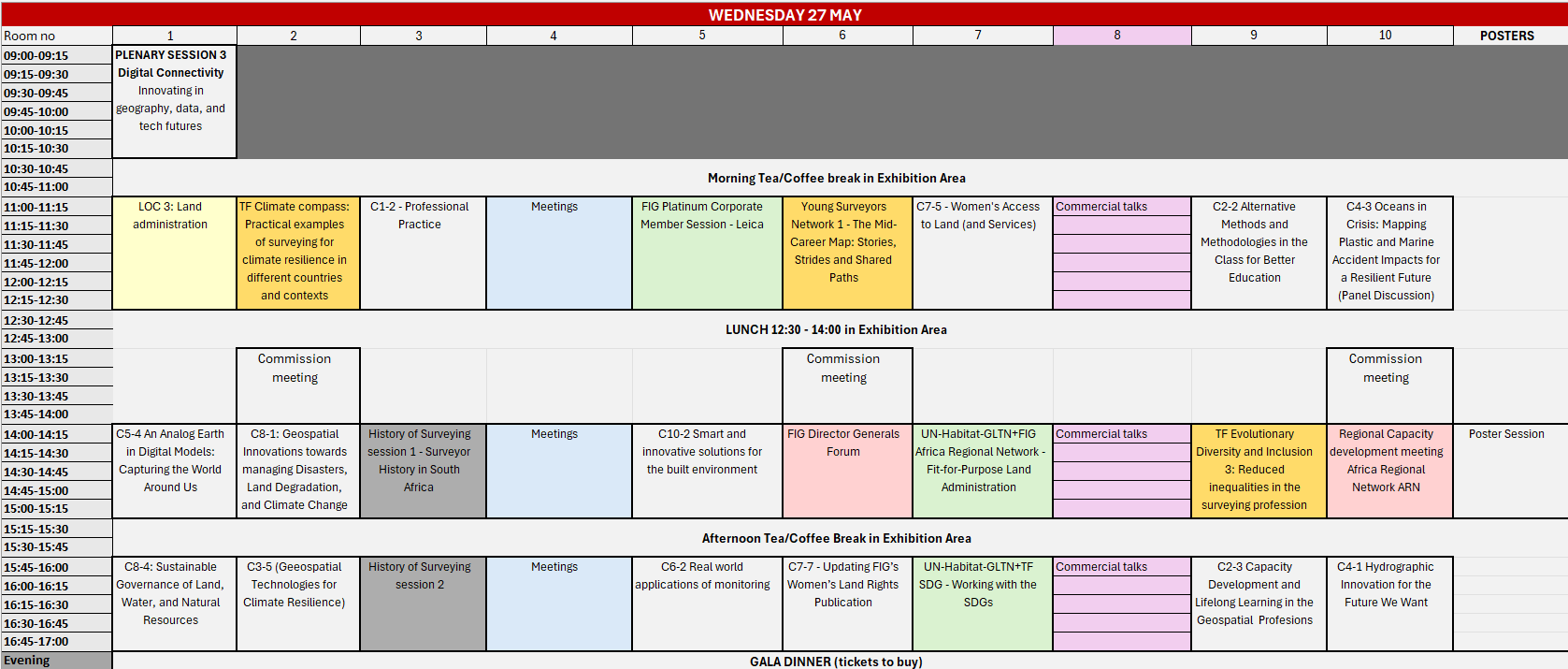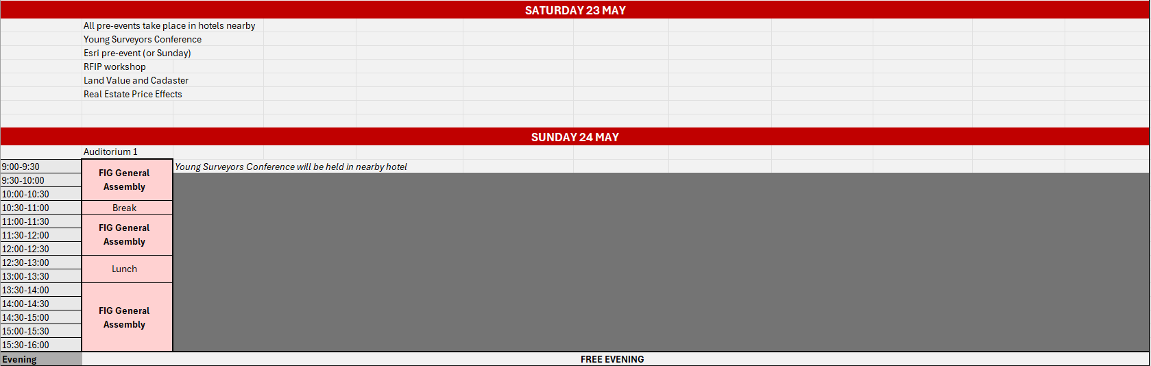 | Evenings | Welcome Reception | FIG Commission Dinners | Gala Dinner | |||||
