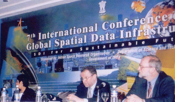 The 7th International Conference on Global Spatial Data Infrastructure (GSDI-7) “SDI for Sustainable Future” was held in Bangalore, India February 2-6, 2004. In conjunction to GSDI-7 also the 11th Meeting of the International Steering Committee of Global Mapping took place February 7, 2004. Further the Permanent Committee on GIS Infrastructure for Asia and the Pacific (PCGIAP) had its 10th Annual Meeting in Bangalore. In the GSDI programme there were also two days reserved for pre-conference tutorials. Finally some participants visited Map India 2004 in New Delhi on their way to Bangalore, so the sample of events offered an excellent opportunity for overseas visitors to learn about the progress in SDI business in India during the last years. GSDI-7 was organized by the Indian Space Research Organisation (ISRO) and the Department of Science and Technology, Government of India and it was co-hosted by the Survey of India.