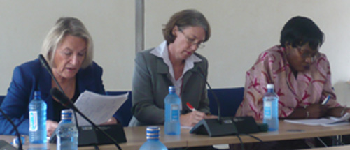 The Opening session. From the left: Inga Björk-Klevby, Deputy Director of UN-HABITAT; Clarissa Augustinus, Chief of UN-HABITAT Land Tenure and Property Administration Section; and Agnes Kalibbala, Ambassador and Chairperson of the IAB