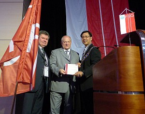 Matt Higgins was appointed as an Honorary Member of FIG - the badge and certificate were received on his behalf by Rob Sarib.