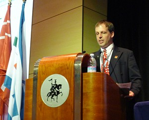 The first speaker at the plenary session was Franco Maggio, Director, Agenzia del Territorio. Bruno Razza (left) was the co-chair of the session. The second Italian speaker was Maurizio Gasparri, past Minister of Communications and Head of PDL political party