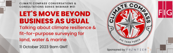 FIG Climate Compass Task Force is launching its first webinar for building capacity in surveyors to undertake climate action with the title  "Let's Move Beyond Business-as-usual: Talking about Climate Resilience and Fit-for-purpose surveying for Land, Water & Marine".