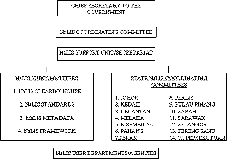 2.3.3 The Chief Secretary to the Government as head of the public service has issued the Public Administration Development Circular No. 1 1997 providing guidelines to the Secretary Generals of Ministries, Heads of Federal Departments, Heads of Statutory Bodies, State Secretaries and Heads of Local Authorities on the Establishment of the National Infrastructure for Land Information System dated 2 January 1997 with the following provisions:-