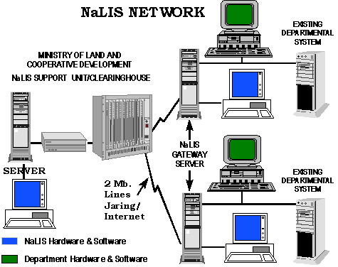3. For data communication, NaLIS makes use of the carriers made available by the telecommunication companies. Depending on the type of data that is required to be transferred between systems (text, graphics or images) suitable carriers will communicate data from the data providers to data users in the format and speed that is required. The establishment of the Government Integrated Telecommunication Network (GITN) can facilitate the implementation of NaLIS.