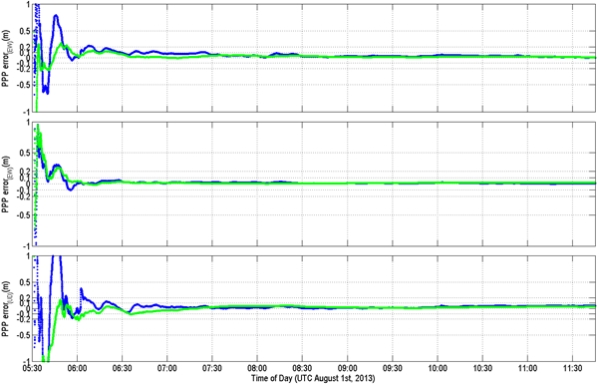 decimeter-level accuracy was obtained for kinematic PPP after 1.5 hours